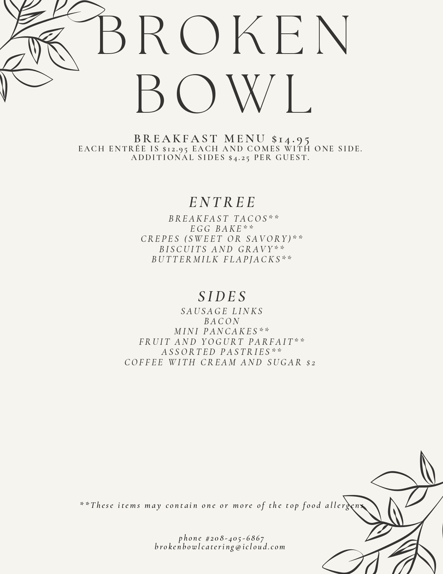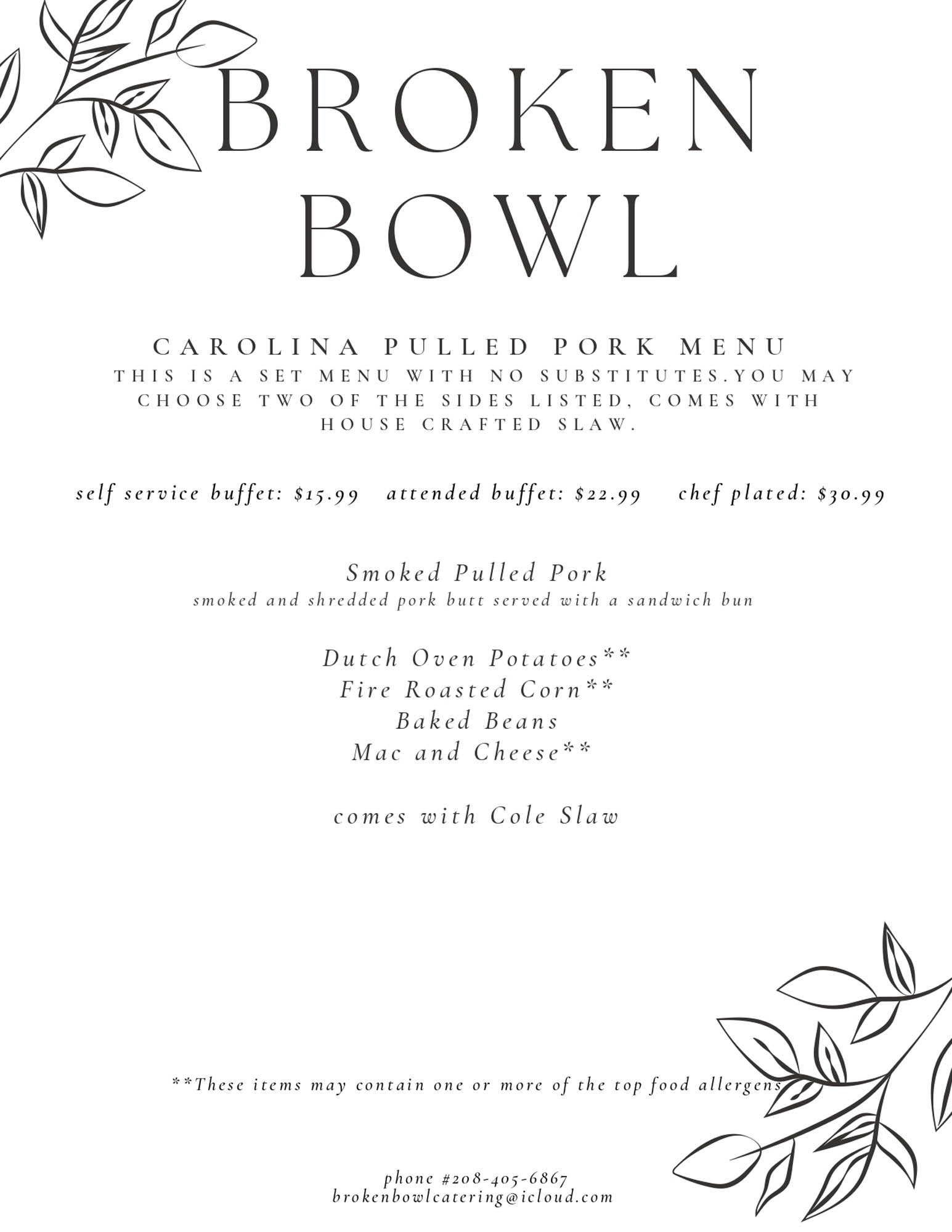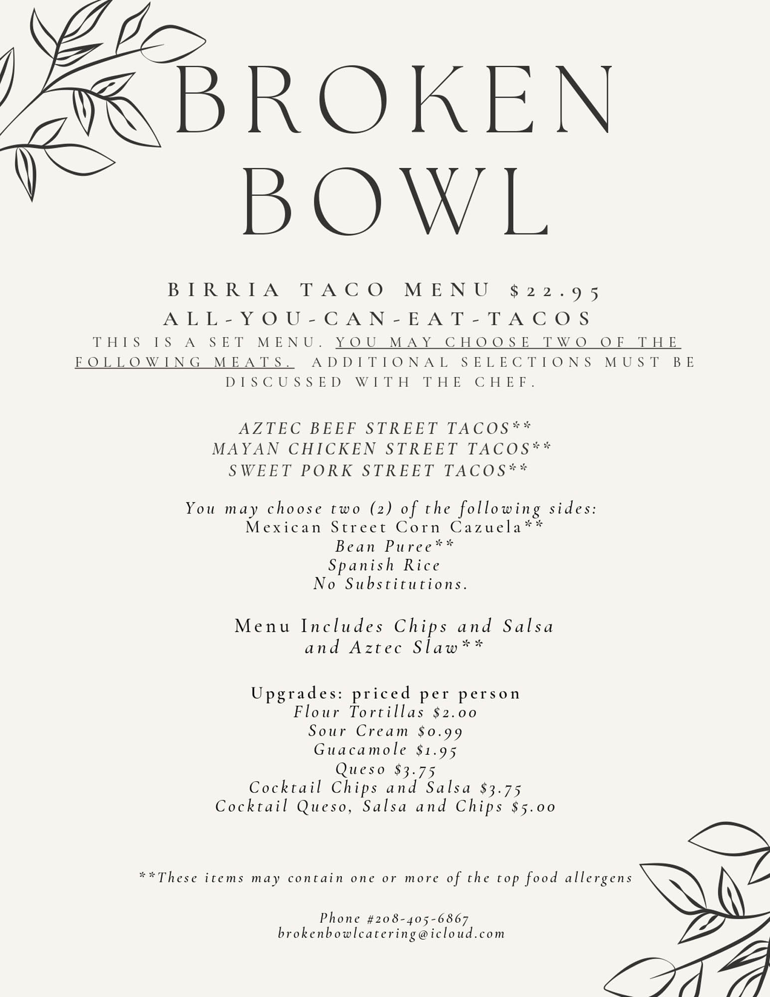 Select A Menu Carolina Pulled Pork MenuItalian MenuAztec MenuBirria Taco MenuLunch and Dinner MenuSides and SaladsDessert and BeveragesAppetizer and Grazing TablesAdditional InformationEquipment Rentals